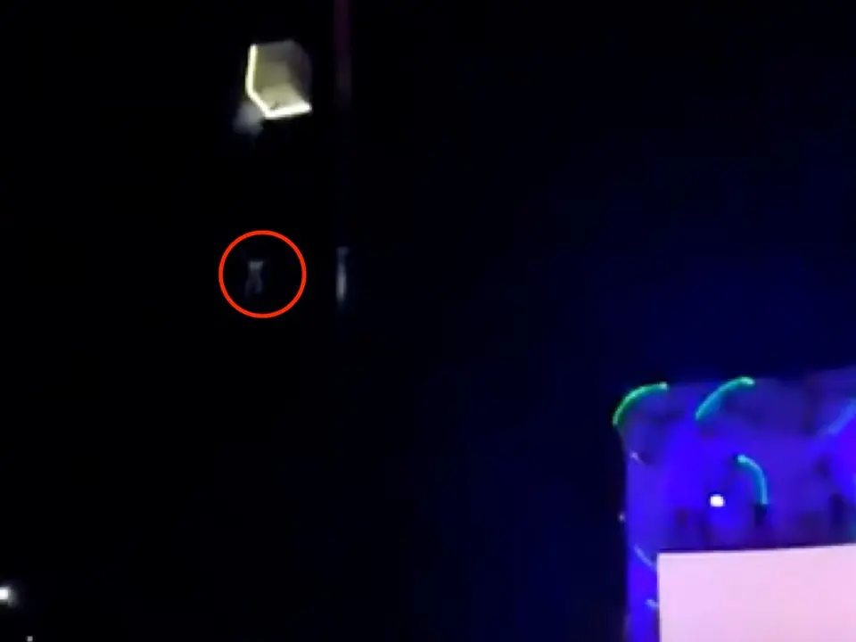 El público asistente pudo ver el accidente en directo a travesee de dos grandes pantallas situadas junto al escenario en las que se estaba proyectando el espectáculo.
