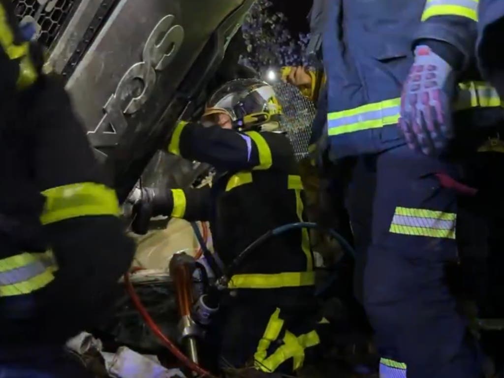 Los Bomberos de la Comunidad de Madrid han llevado a cabo un largo y laborioso rescate del conductor y único ocupante del vehículo tras el siniestro.