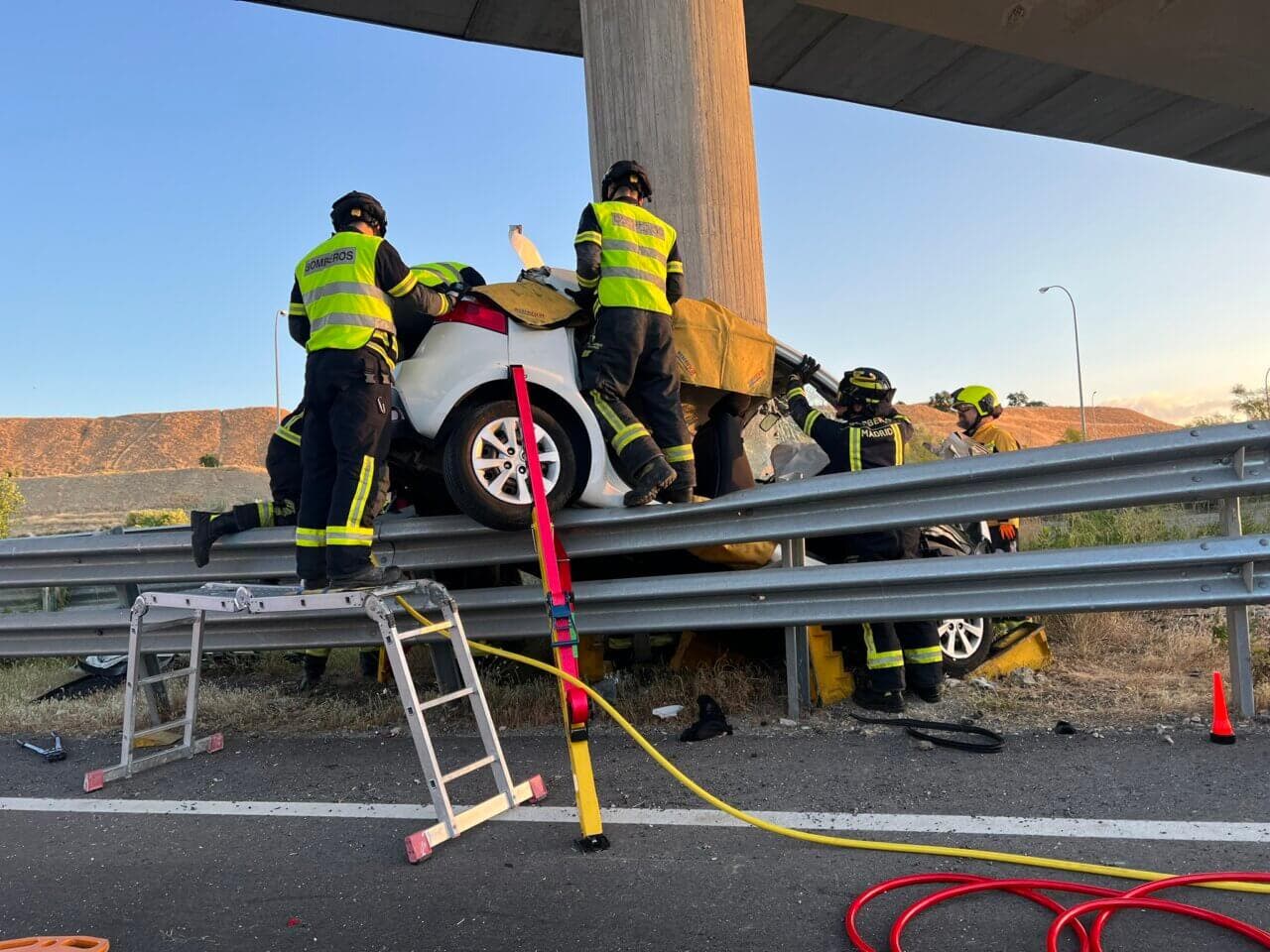 Un hombre de 43 años ha fallecido este domingo tras chocar el turismo que conducía contra el pilar de un puente en la M-45, a la altura del distrito madrileño de Villa de Vallecas.