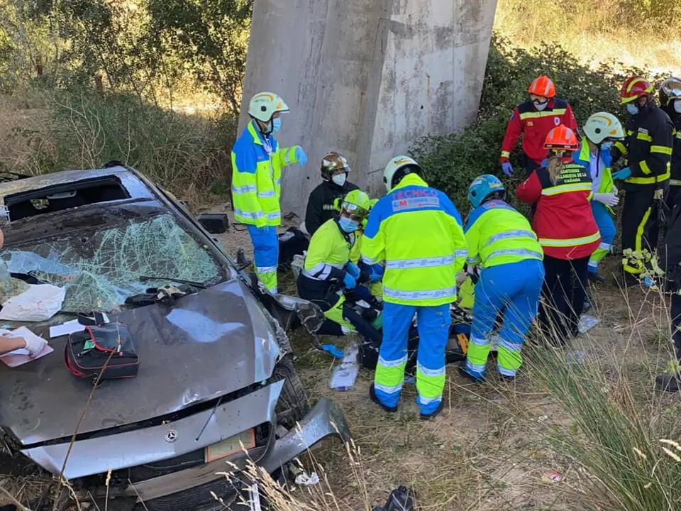 Los Bomberos de la Comunidad de Madrid han tenido que rescatar del interior del turismo al hombre, que era el único ocupante, y se encontraba en parada cardiorespiratoria con politraumatismos.