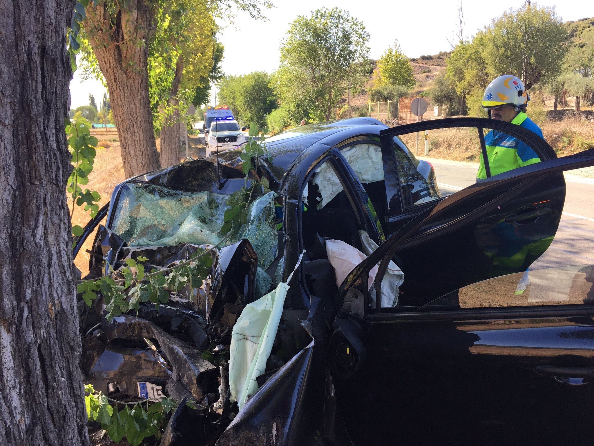 El turismo se salió por causas que se desconocen por la parte derecha de la calzada en el kilómetro 12 de la M-302, colisionando acto seguido contra un árbol.