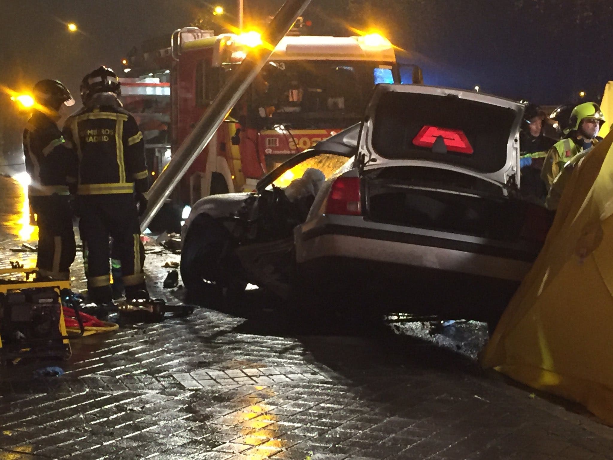 Los dos jóvenes quedaron atrapados en el vehículo y sufrieron paradas cardiorrespiratorias, pero sólo el de 21 años, el copiloto, pudo ser reanimado por los efectivos del SAMUR y trasladado al Hospital de La Paz.