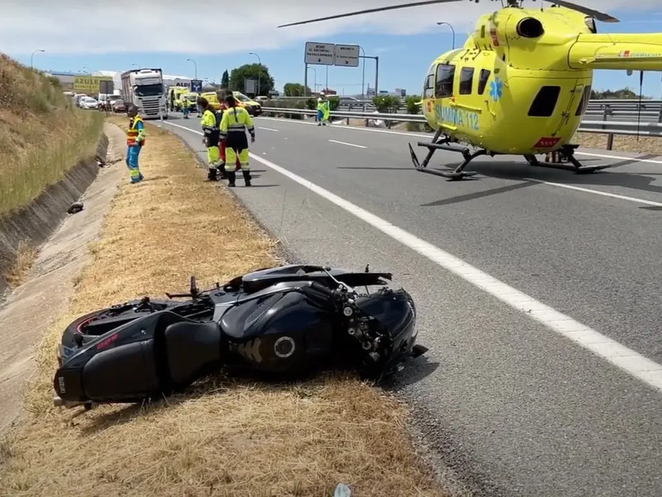 Al parecer, el motorista se ha caído solo, ya que no había más vehículo implicados. Hasta el lugar se ha desplazado un helicóptero del SUMMA, cuyos sanitarios han encontrado a la víctima en parada cardiaca.