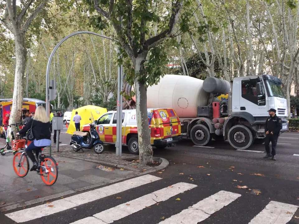 Un hombre de 38 años ha muerto este viernes en Madrid al caer de su moto y ser atropellado por un camión hormigonera que circulaba a su lado, según ha informado Emergencias Madrid.