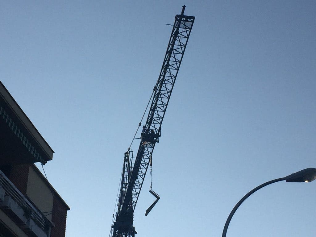 Por causas que investiga la Policía Municipal de Madrid, la palas de la grúa se han roto y todo el peso de la carga ha caído sobre él a 20 metros de altura.
