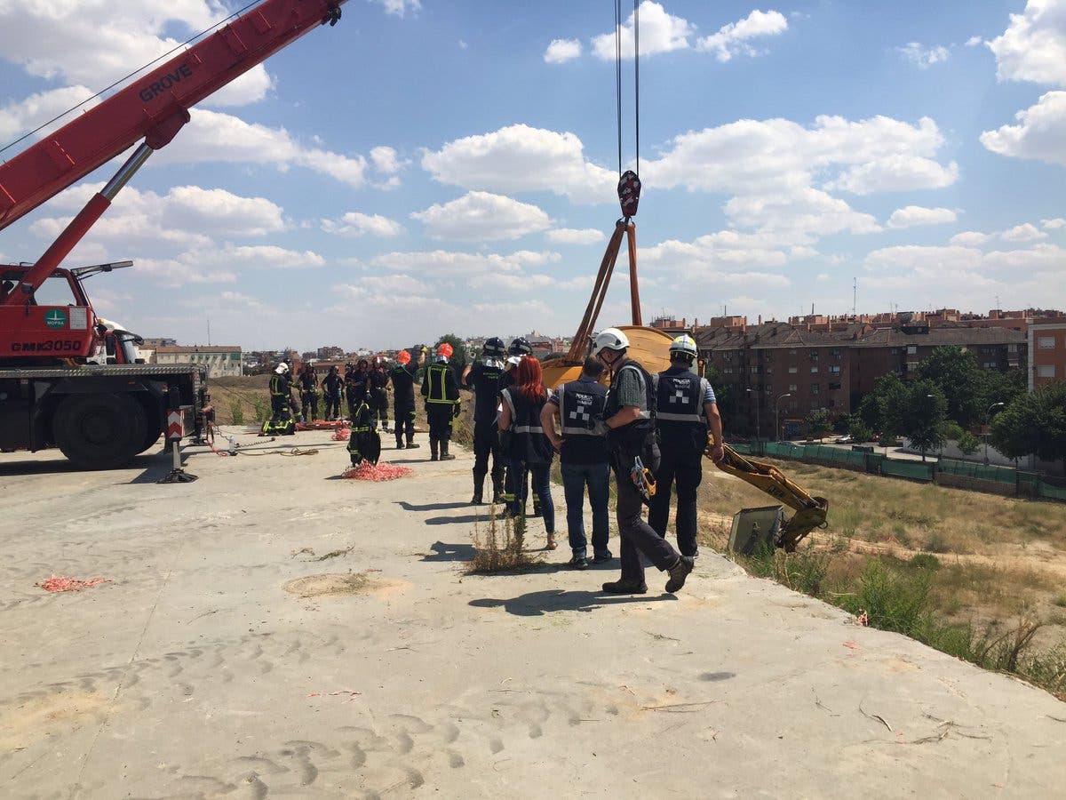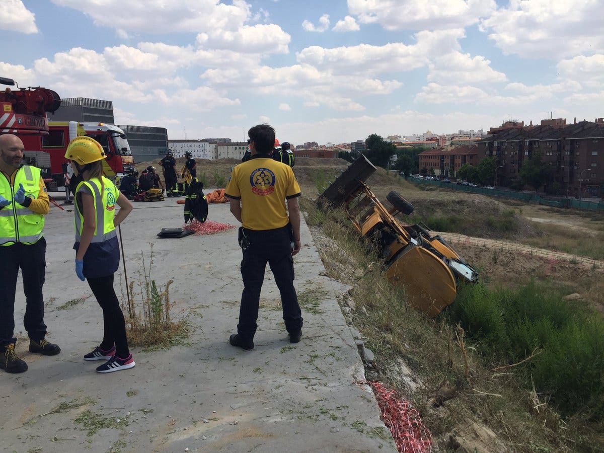 Los Bomberos del Ayuntamiento de Madrid instalaron una grúa para remolcar la máquina, pero cuando lograron liberar el cuerpo de la víctima, los facultativos del SAMUR solo pudieron confirmar el fallecimiento.