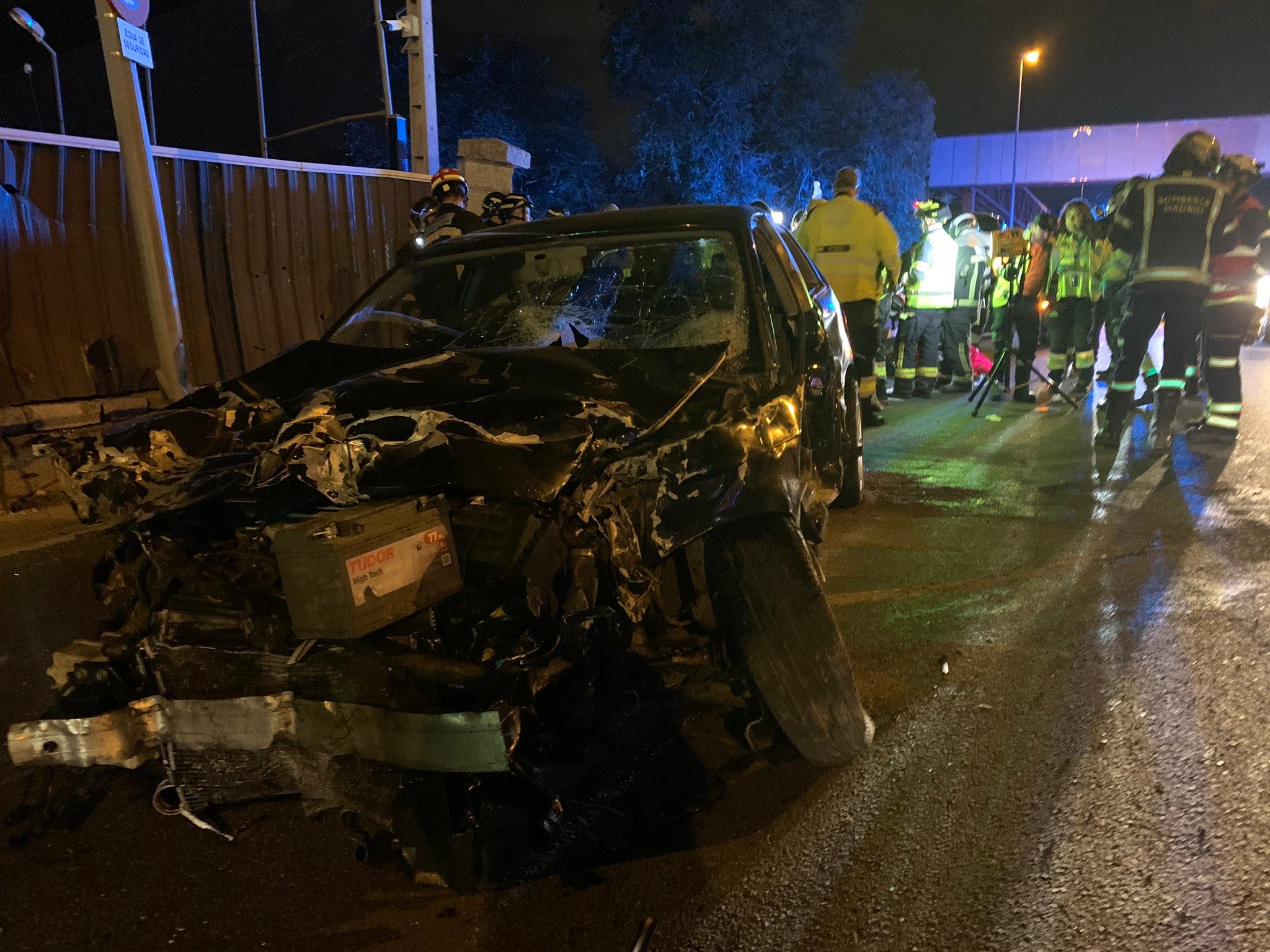 Los Bomberos de la Comunidad de Madrid fueron los primeros en llegar al lugar, procediendo al rescate del conductor, una tarea en la que colaboraron los Bomberos del Ayuntamiento de Madrid.
