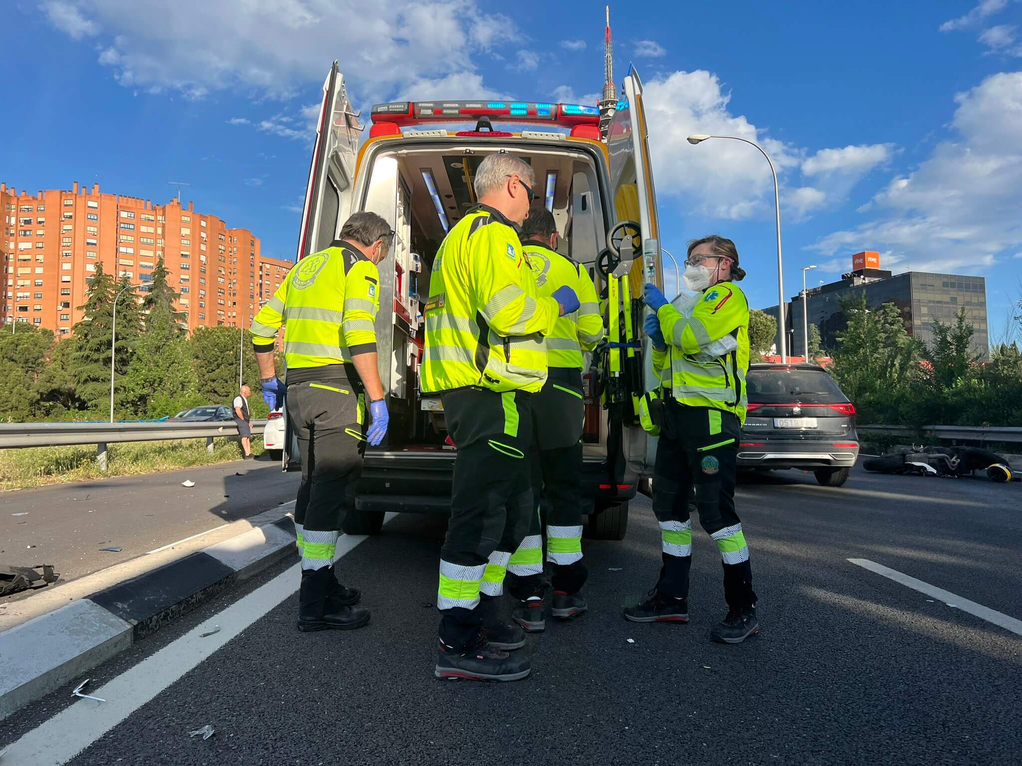 Se trata de una colisión entre una moto y un taxi; el motorista se incorporaba al carril bus-moto cuando ha chocado, ha informado Emergencias Madrid.