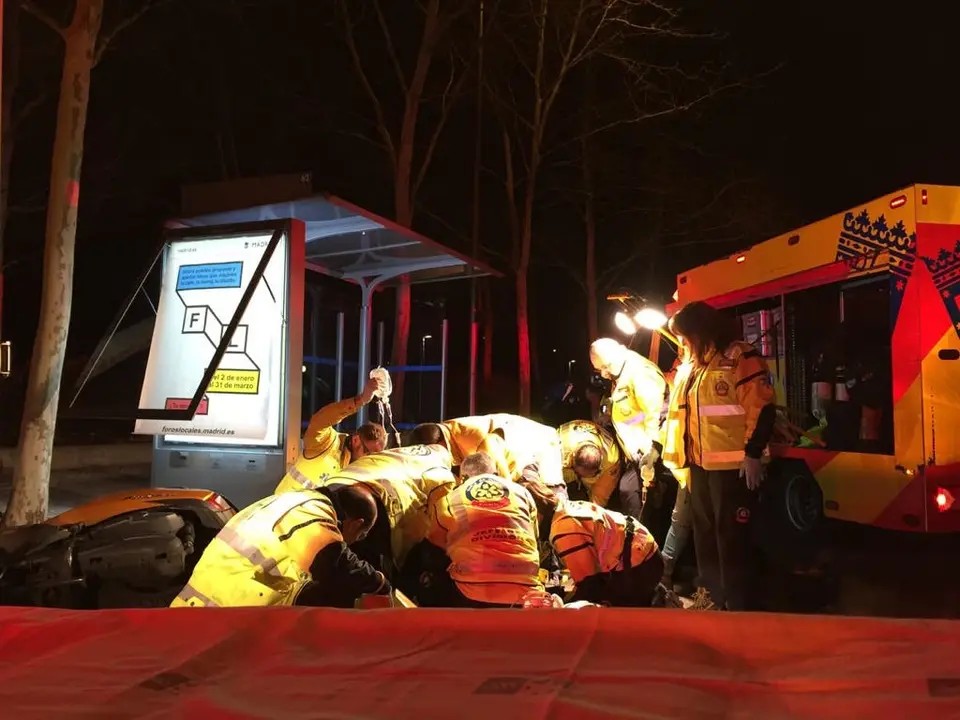 Mientras era atendido, ha entrado en parada cardiorrespiratoria, que el SAMUR ha logrado revertir y ha trasladado al herido al Hospital 12 de Octubre donde ha ingresado muy grave.
