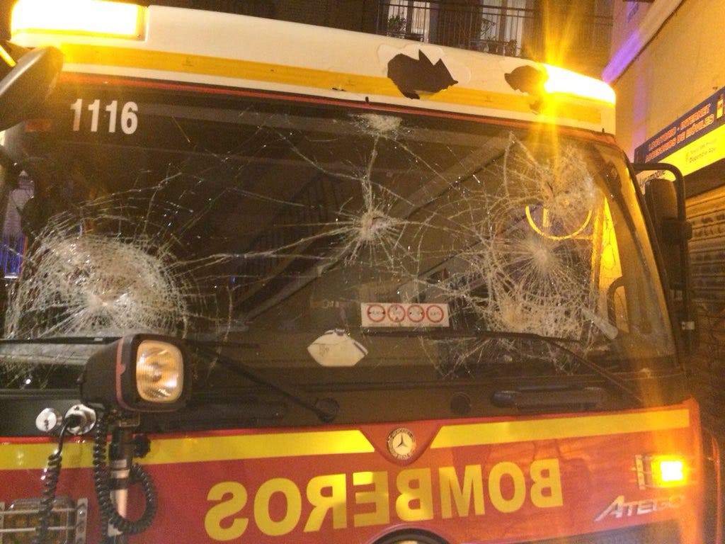 Los concentrados han dedicado a los agentes varios insultos como «asesinos» y los Bomberos han tenido que apagar varios incendios de contenedores por las calles del barrio.