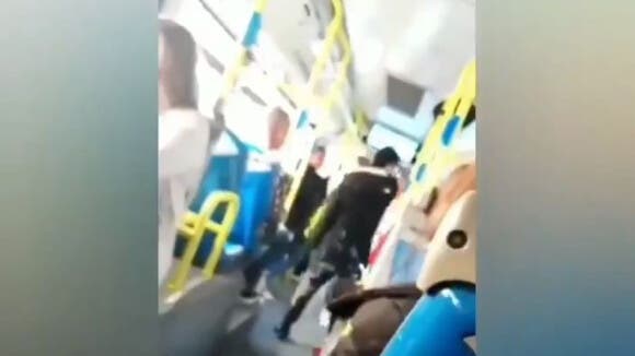 La mujer le responde que está en su país, pero cuando se dispone a bajar del autobús, el agresor, al que una acompañante llama Arturo, la golpea violentamente con la mano y después estira la pierna hacia el exterior para intentar darle una patada.