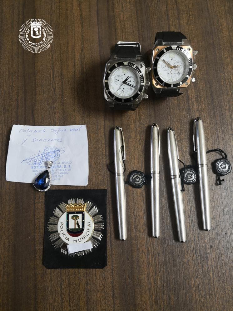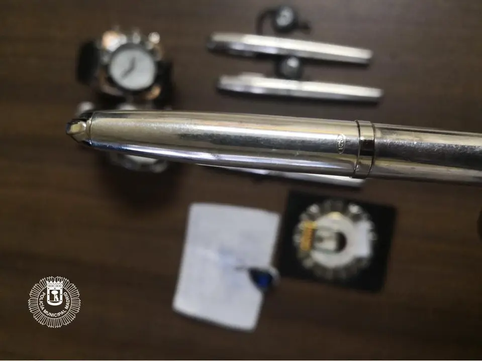 Dentro de él, encontraron cuatro plumas estilográficas con un pequeño grabado en la parte posterior con los dígitos 925, dos relojes de valor y un colgante con una piedra azul central y brillantes a su alrededor.