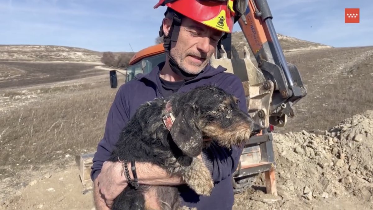Casi 24 horas atrapada en una madriguera: los bomberos rescatan en Valdemoro a la perrita ‘Mamba’
