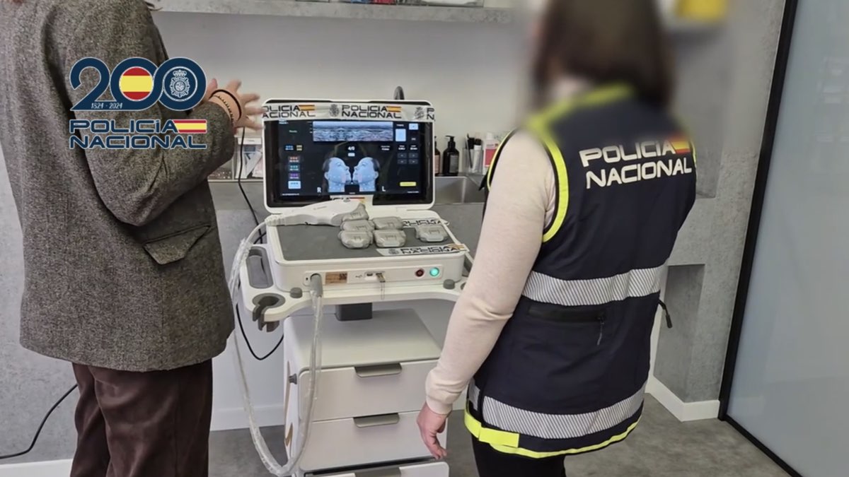 Agentes de la Policía Nacional han intervenido en una clínica estética de Madrid una máquina falsificada destinada a realizar tratamientos de rejuvenecimiento facial. En la pantalla del aparato se reproducía de forma constante el mismo vídeo, simulando imágenes captadas por un ecógrafo para engañar a los pacientes.