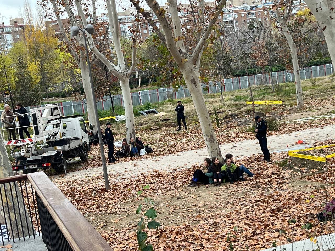 Vecinos y ecologistas han convocado este lunes una concentración a la altura del número 51 del Paseo de Yeserías de Madrid para protestar por el comienzo de la tala de árboles en el parque de Arganzuela.