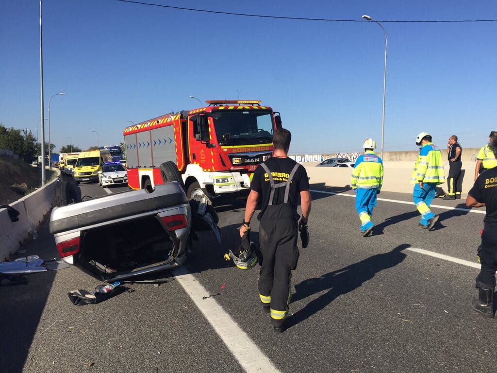 El accidente ocurrió sobre las 17.25 horas, según informó el 112 de la Comunidad de Madrid. El conductor, que viajaba solo, perdió el control del vehículo, por causas que se desconocen, y volcó en la carretera.
