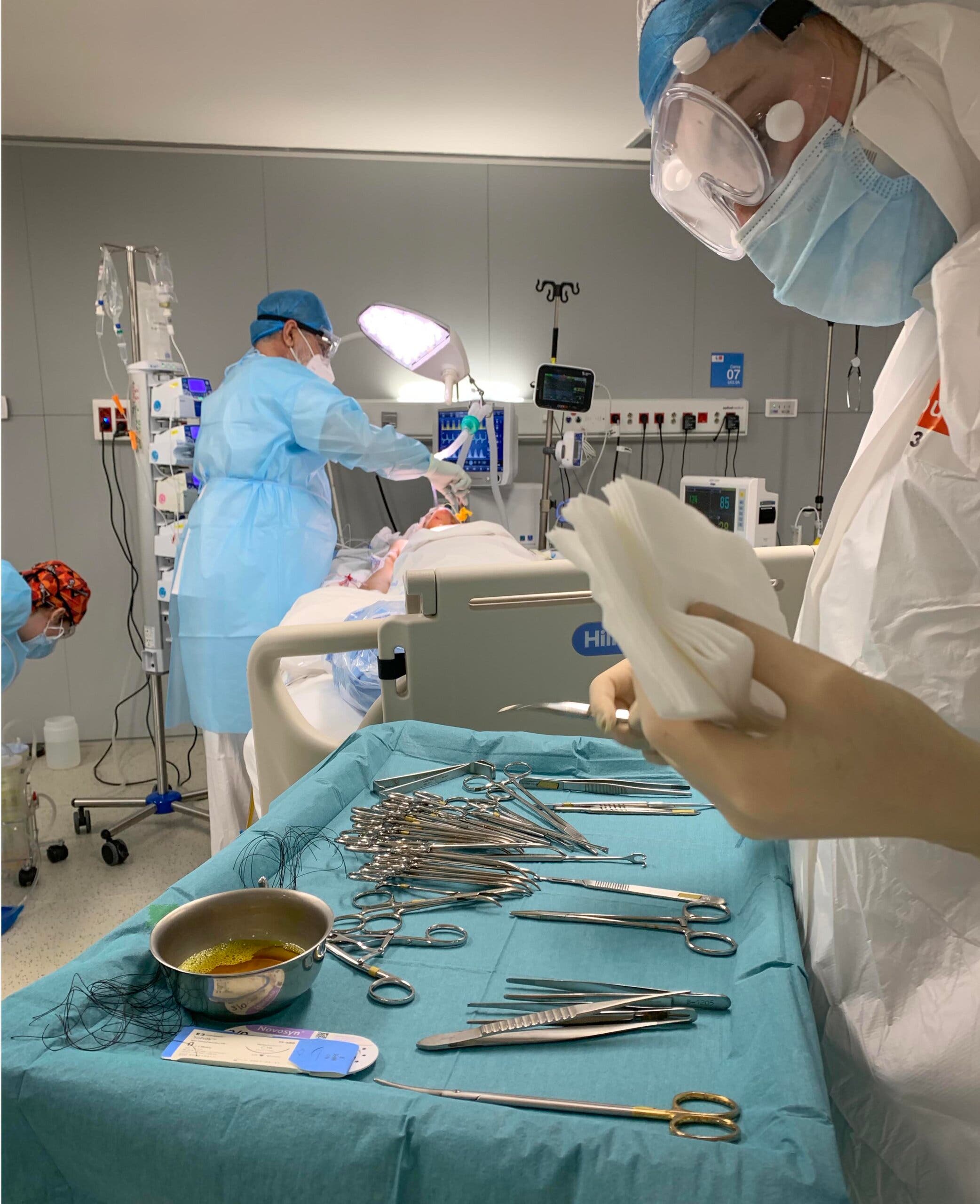 Asimismo, Raboso ha explicado que en la operación era «clave minimizar el riesgo» para los cirujanos, porque la traqueotomía, aunque es algo «muy habitual» para su especialidad, está considerada una intervención de alto riesgo de cara al contagio.