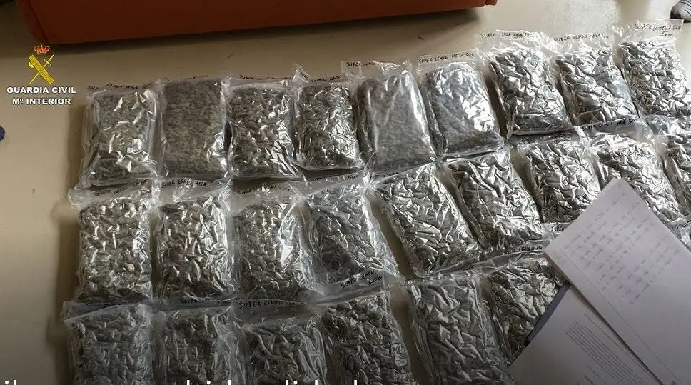 En el registro los agentes encontraron 57.538 gramos de marihuana envasada, en bolsas de 500 gramos, que estaba lista para su venta, así como 7.000 euros en efectivo y útiles para el pesaje y el envasado de la droga.