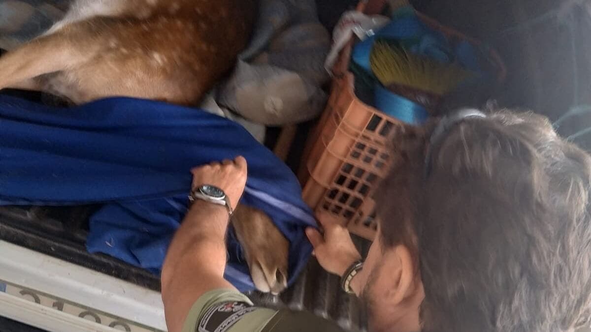 Rescatan a una hembra de gamo embarazada y atropellada en la M-501