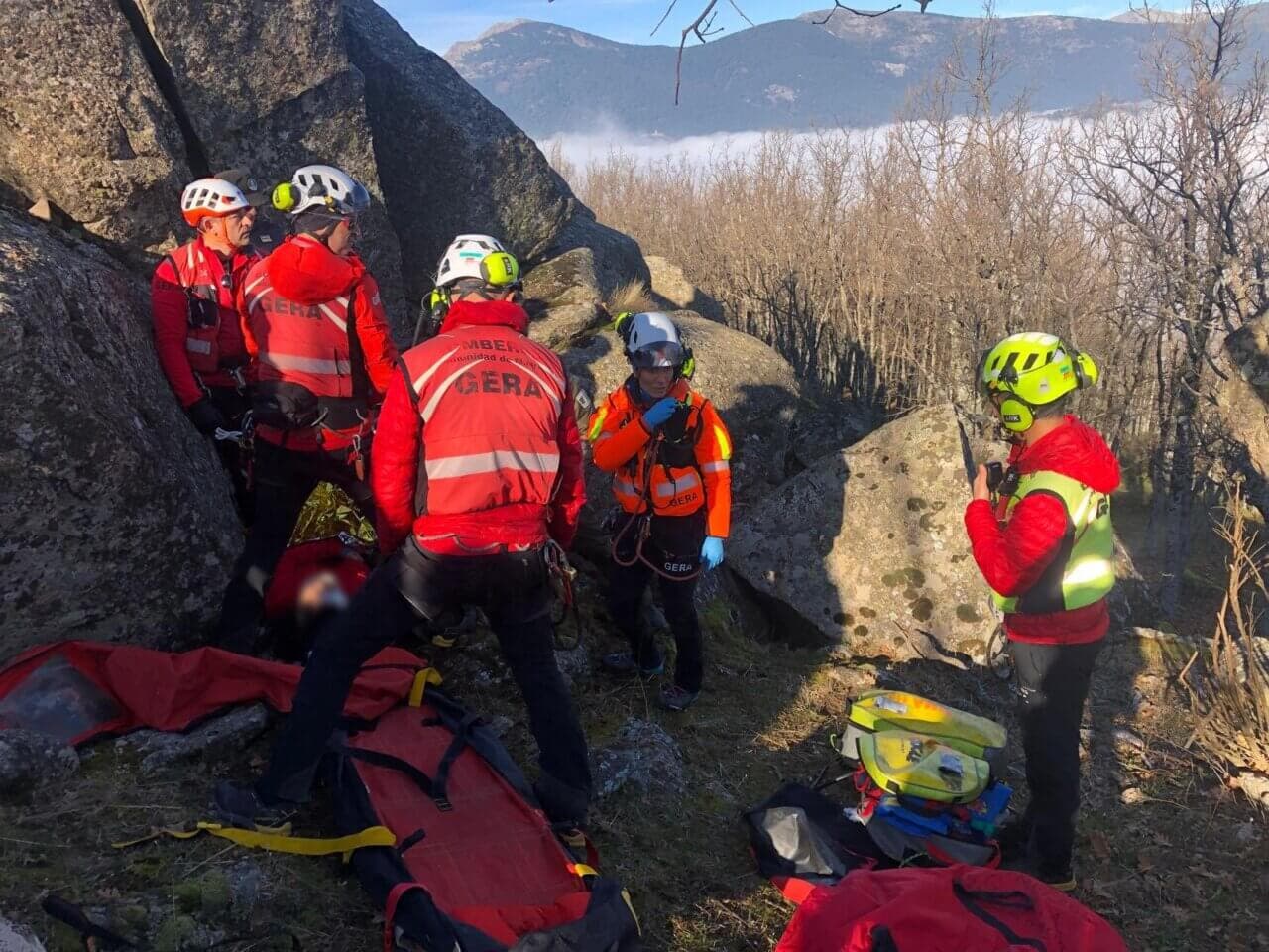 El Grupo Especial de Rescate en Altura (GERA) de los Bomberos de la Comunidad de Madrid ha rescatado este sábado a una senderista herida en Navacerrada.