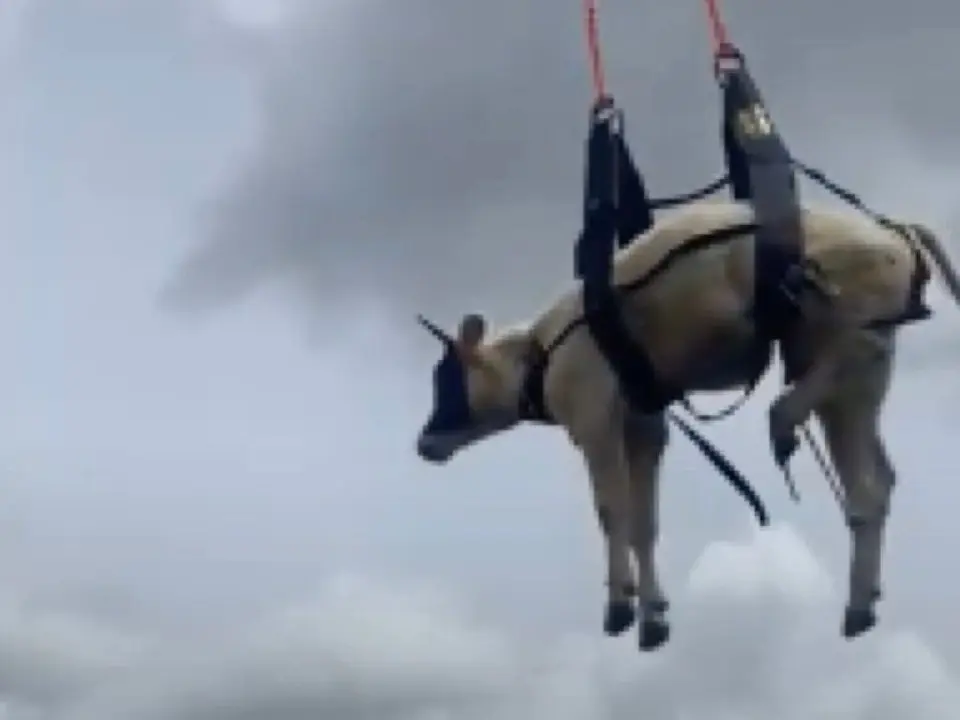 Tras colocar unos arneses especiales para animales, fue extraída de la zona con el helicóptero del GERA y trasladada a su ganadería.