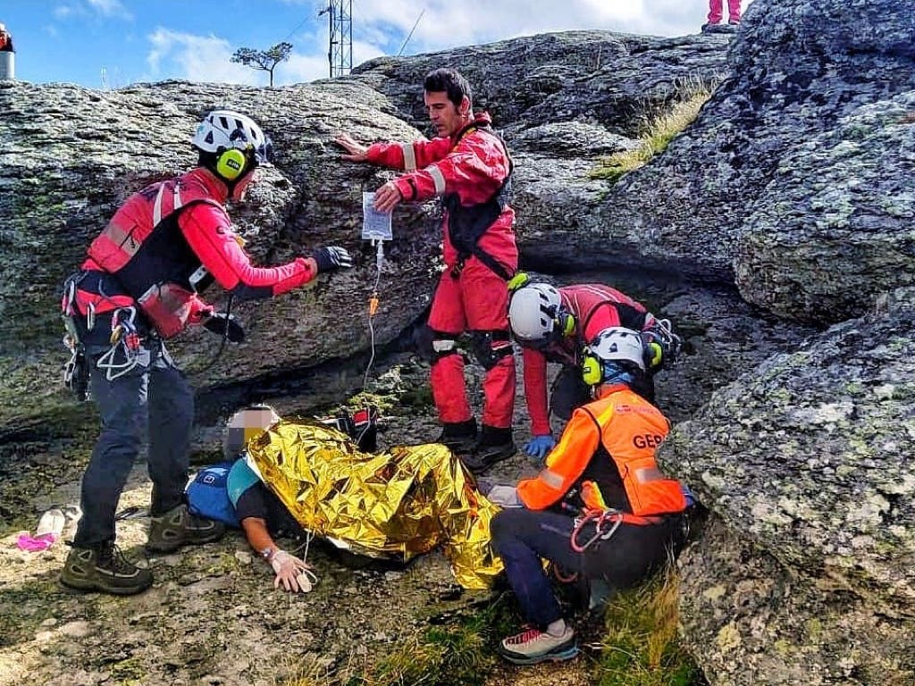 El Grupo Especial de Rescate en Altura (GERA) de los Bomberos de la Comunidad de Madrid se encarga de este tipo de intervenciones que suelen aumentar los fines de semana en la Sierra.