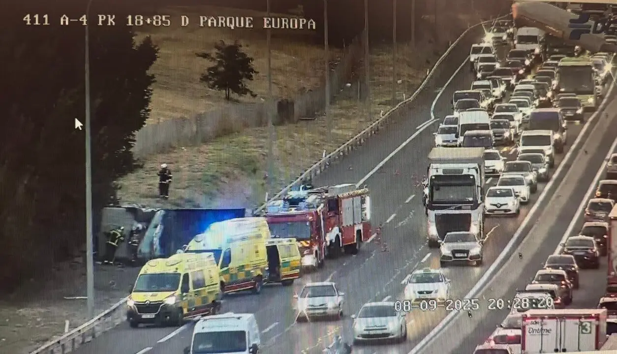 Retenciones en la A-4 en Pinto por el vuelco de un camión
