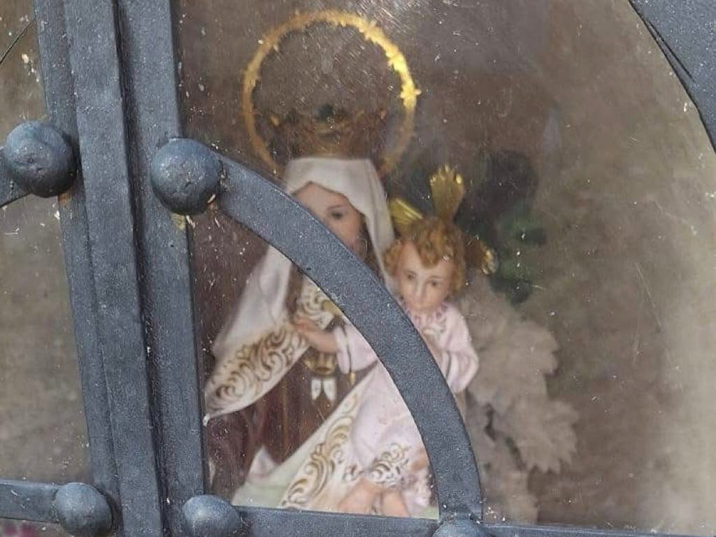 El regidor ha compartido la denuncia que interpuso ante la Guardia Civil el párroco, en la que explica que un vecino le comunicó el robo al ver que la Virgen no se encontraba en su sitio y que la reja que la protegía había sido arrancada.