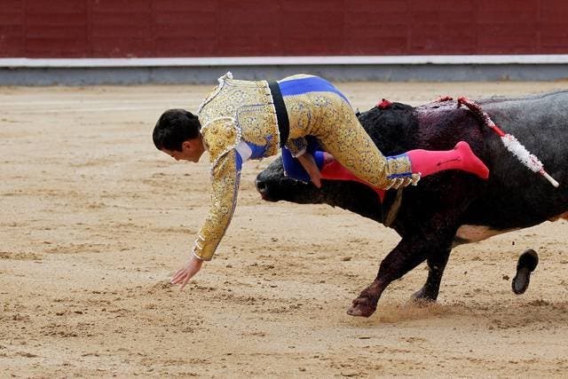 El torero Rubén Pinar, resultó herido por el primer toro de la corrida celebrada este pasado viernes en Las Ventas.