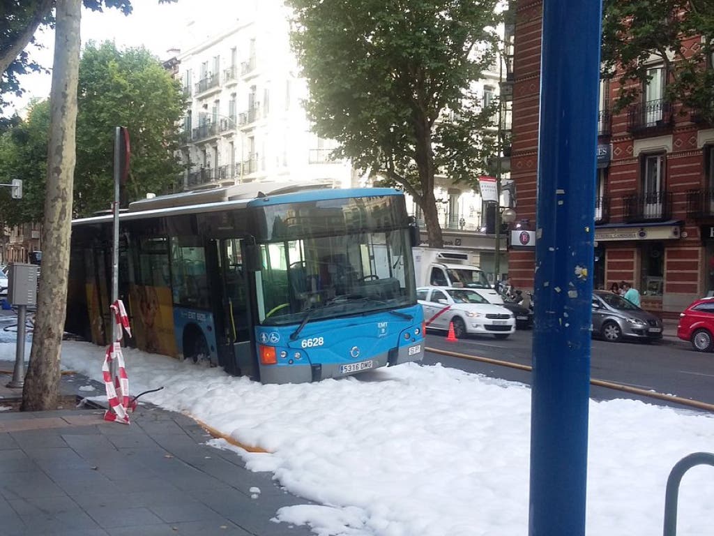 Es la segunda vez que ocurre en la misma semana. Un autobús de la EMT (Empresa Municipal de Transportes) de Madrid ha salido ardiendo este miércoles sobre las 8 de la mañana a la altura del número 10 de la calle Velázquez, en pleno centro de la capital.