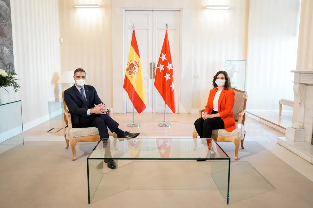 El presiente del Gobierno, Pedro Sánchez, y la presienta de la Comunidad de Madrid, Isabel Díaz Ayuso, han acordado Stefanías lunes crear un «Espacio de Cooperación» entre el Gobierno de España y el Gobierno de la Comunidad de Madrid para el seguimiento y respuesta de la evolución de la pandemia, que aborde los asuntos principales que afectan a la sociedad.