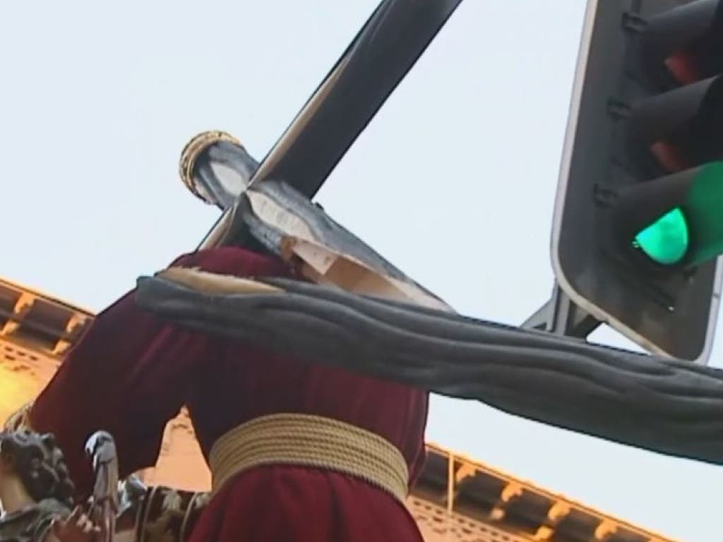 Se parte la cruz del Gran Poder de Madrid al chocar contra un semáforo