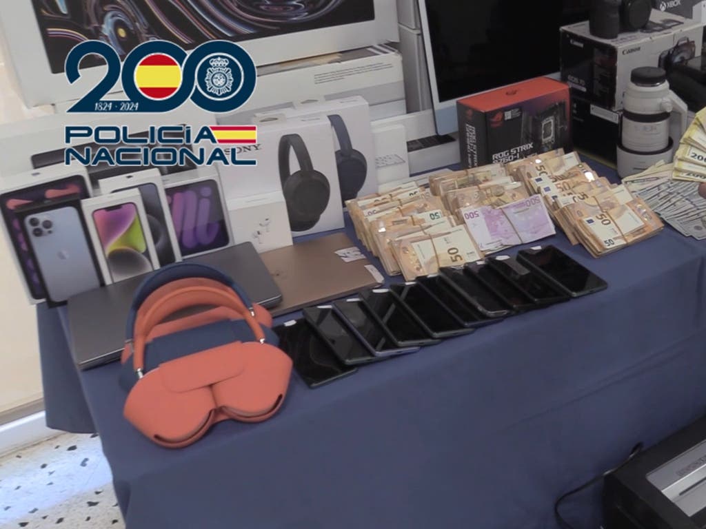 Tras una larga investigación, la Policía llevó a cabo dos registros domiciliarios simultáneos, donde se intervinieron casi 114.000 euros en efectivo, más de 1.500 dólares, seis vehículos, numerosos teléfonos móviles, ordenadores, cámaras y tabletas, además de documentación bancaria y anotaciones relevantes.