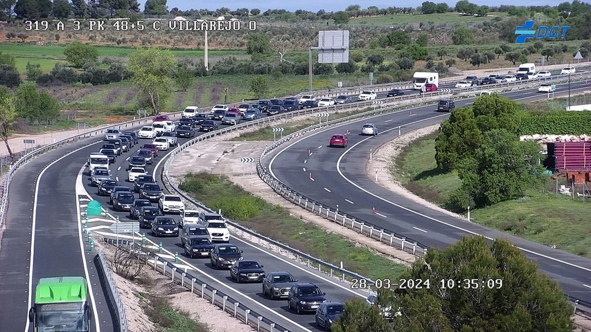 - En la A-3 la circulación es especialmente densa en sentido salida, en Villarejo de Salvanés y Fuentidueña de Tajo.