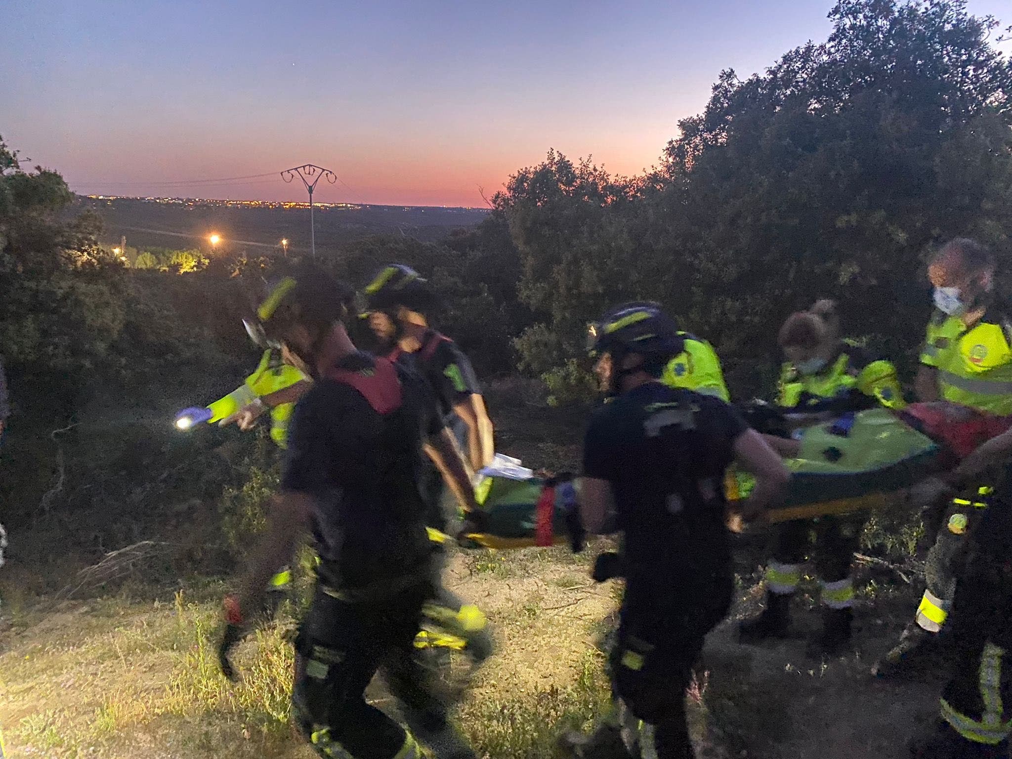Los vehículos de emergencias se quedaron en una carretera a varios metros del lugar en el que se encontraba el herido al ser una zona de difícil acceso, por lo que los sanitarios del SAMUR se desplazaron caminando.