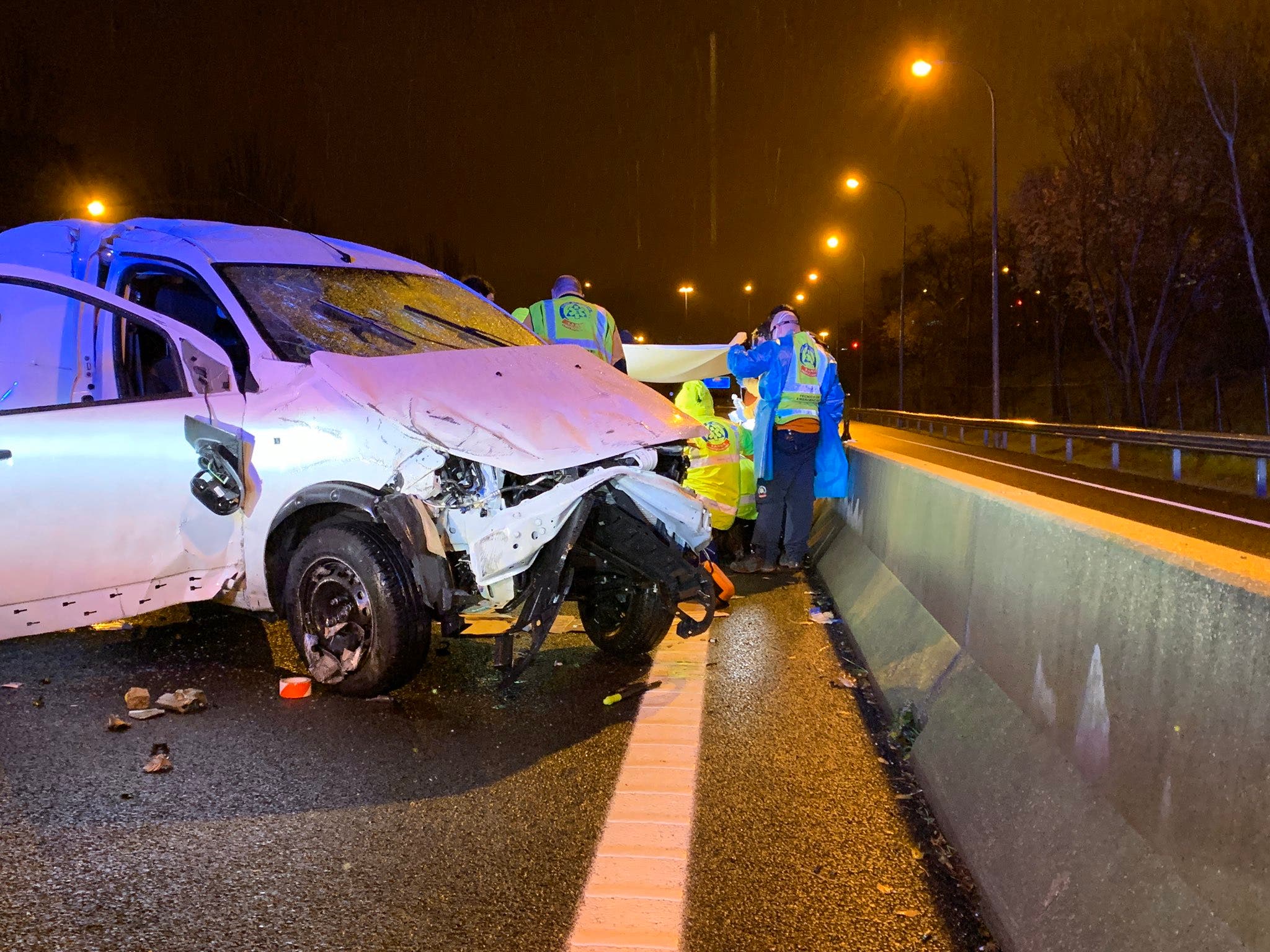 Un conductor de 35 años ha resultado herido muy grave esta madrugada al chocar la furgoneta que conducía contra la mediana de la M-30, a la altura del kilómetro 30, en el distrito de Fuencarral, ha informado Emergencias Madrid.