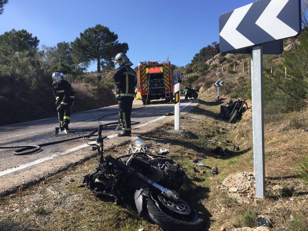 Varias motocicletas se han visto implicadas en el siniestro, derivando el 112 el aviso a los Bomberos de la Comunidad de Madrid dado que dos de ellas han acabado ardiendo.