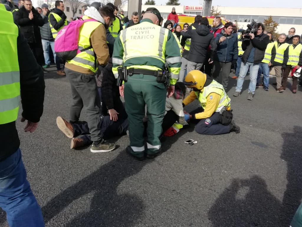 El atropello ha ocurrido sobre las 13.45 horas a la altura del kilómetro 10, cuando un grupo de taxistas que iba por el carril central de la carretera de Barcelona sentido Avenida de América, ha tratado de ocupar el carril sentido salida, con los brazos extendidos para avisar a los vehículos.