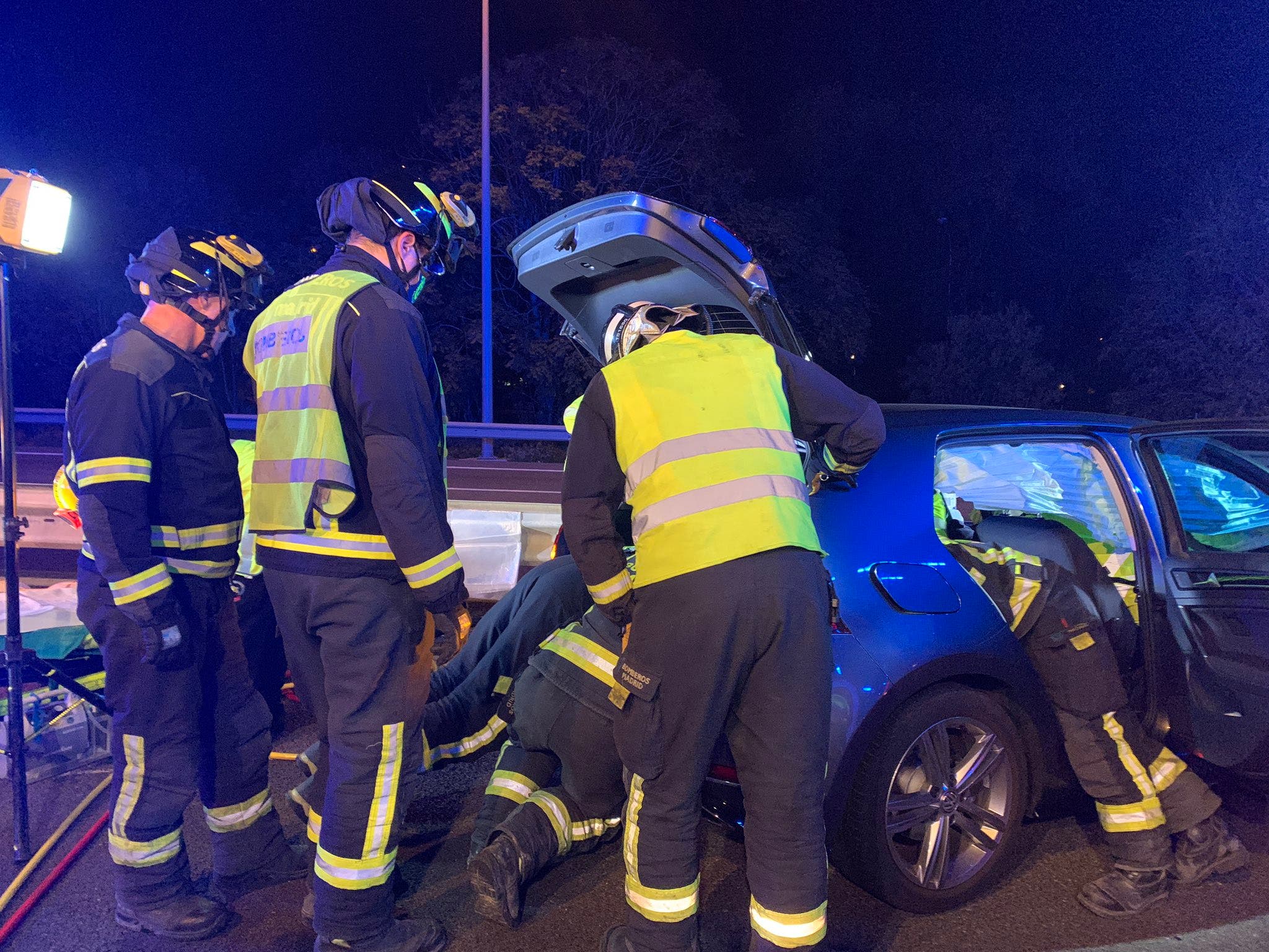 Asimismo, un hombre de 52 años, conductor de uno de los turismos que circulaba correctamente, ha quedado atrapado en su vehículo, y ha sido rescatado por los Bomberos y trasladado al Gregorio Marañón con un traumatismo torácico y posible trauma cervical.