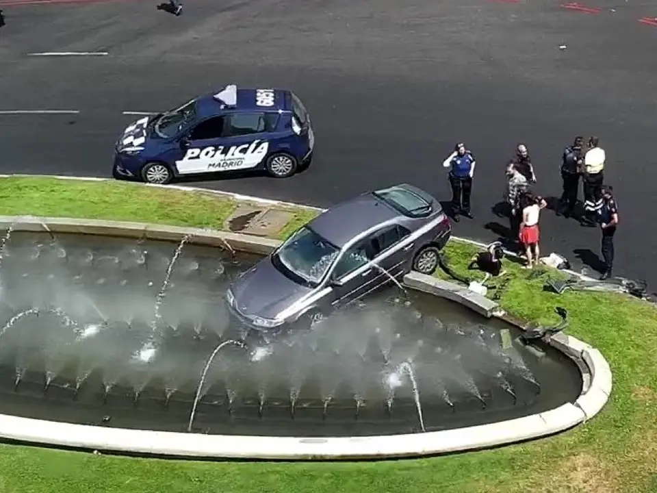 Un conductor de unos 40 años ha perdido el control de su vehículo y ha acabado chocando contra una valla y dentro de una fuente, según ha informado Emergencias Madrid.