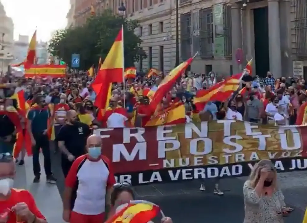 La Policía detuvo este sábado en Madrid a un hombre de 58 años en una manifestación convocada por la plataforma Pedro Sánchez dimisión, que congregó a más de 3.000 personas para protestar contra la gestión del Gobierno en la crisis del coronavirus.