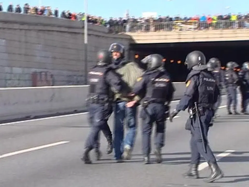 La huelga también deja un taxista herido muy grave tras abalanzarse sobre un coche VTC en la A-2. Se golpeó la cabeza al caer al suelo y fue trasladado a La Paz donde permanece ingresado.