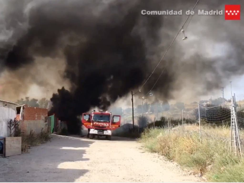 15 personas han sido desalojadas como consecuencia del incendio que se ha declarado sobre las siete de la tarde de este viernes en una infravivienda de la colonia de Guadarrama, entre Móstoles y Arroyomolinos, y que se ha extendido a la ribera del río Guadarrama.