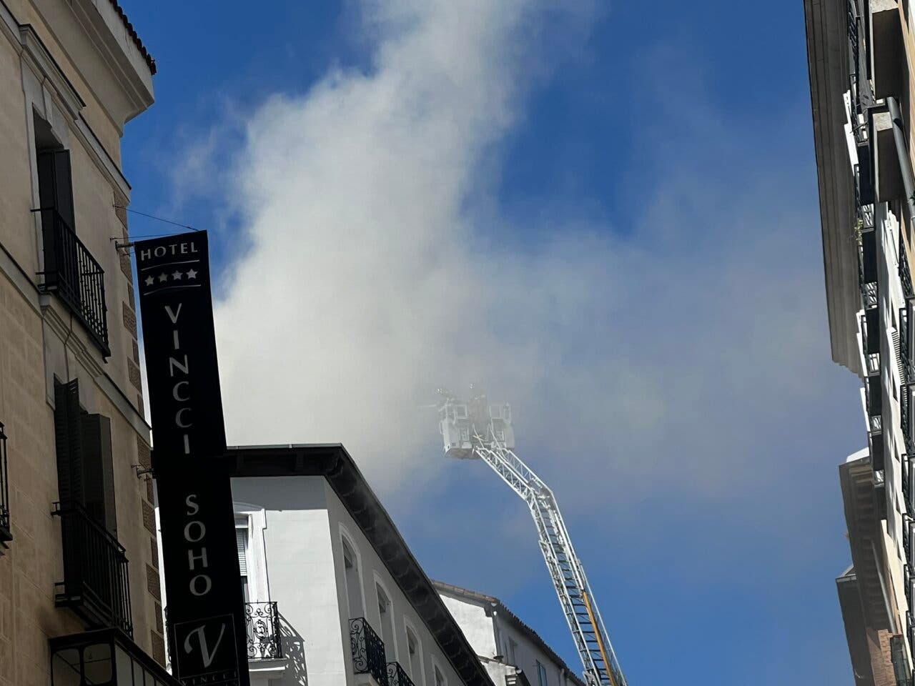 Un incendio declarado este jueves por la mañana en el número 16 de la calle del Prado, en pleno centro de Madrid, ha generado una densa humareda visible desde varias calles. Dos personas han resultado afectadas por inhalación leve de humo y han sido atendidas por los servicios de emergencia.