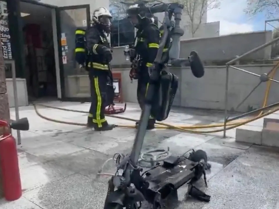 Un patinete eléctrico sale ardiendo y provoca un incendio en San Sebastián de los Reyes