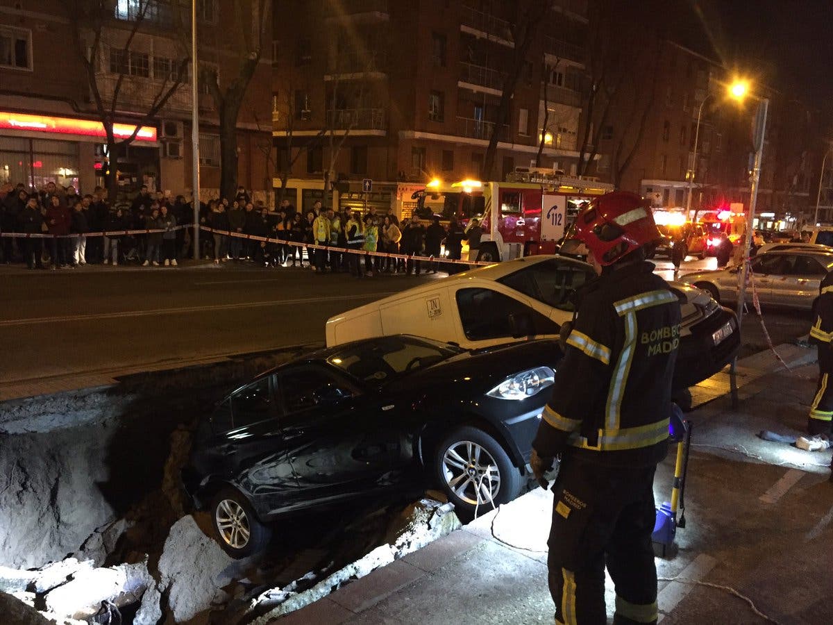 Un socavón se traga dos vehículos en Ciudad Lineal