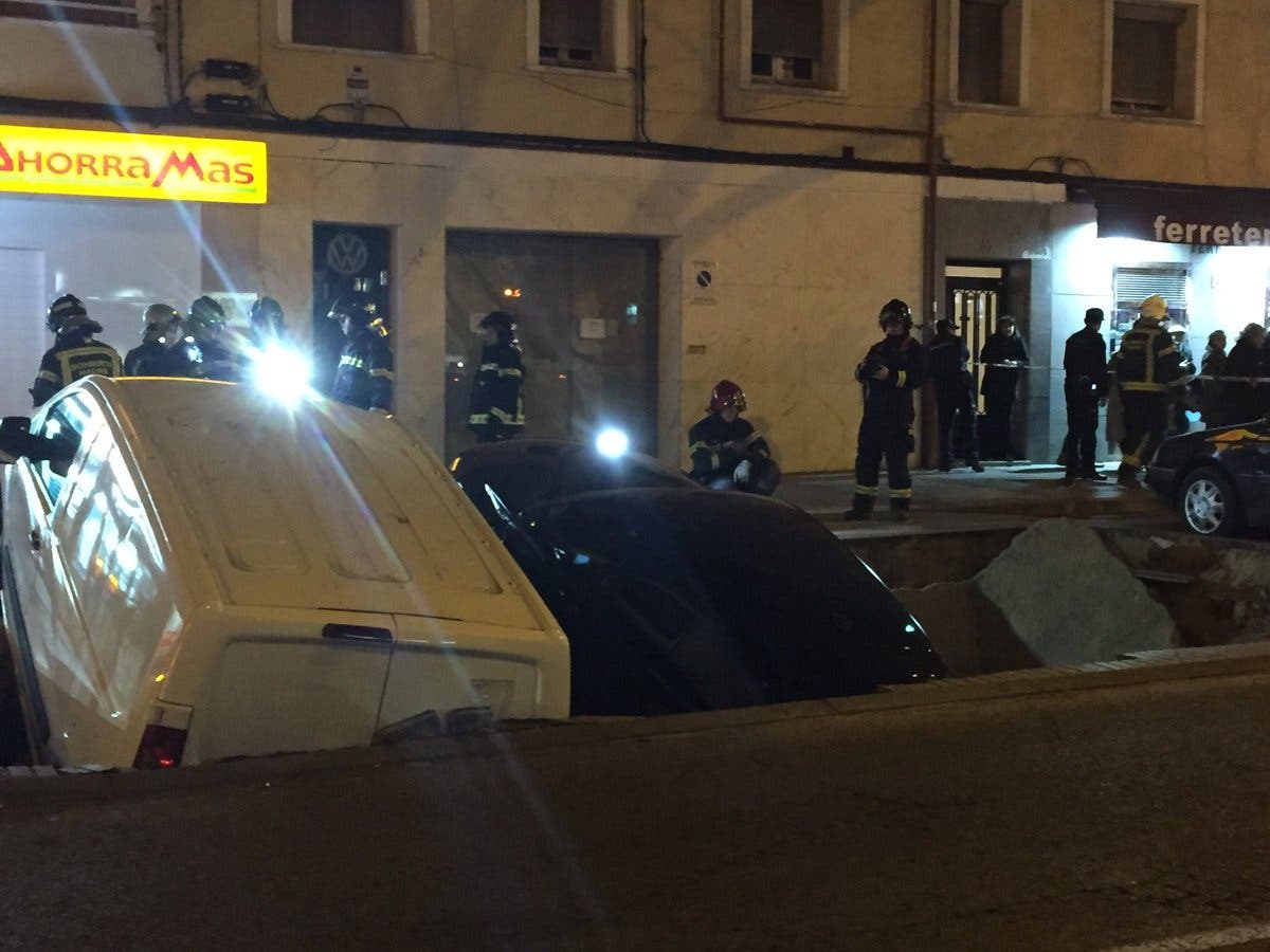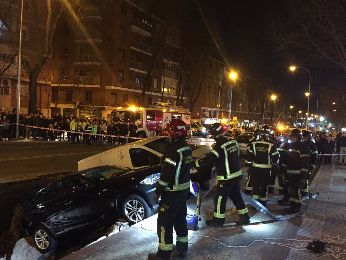 Un socavón se traga dos vehículos en Ciudad Lineal