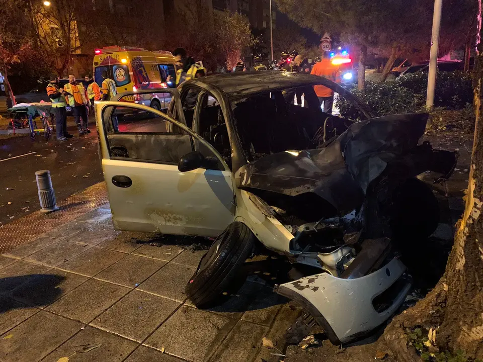 Un vehículo sale ardiendo tras chocar contra un árbol en Usera