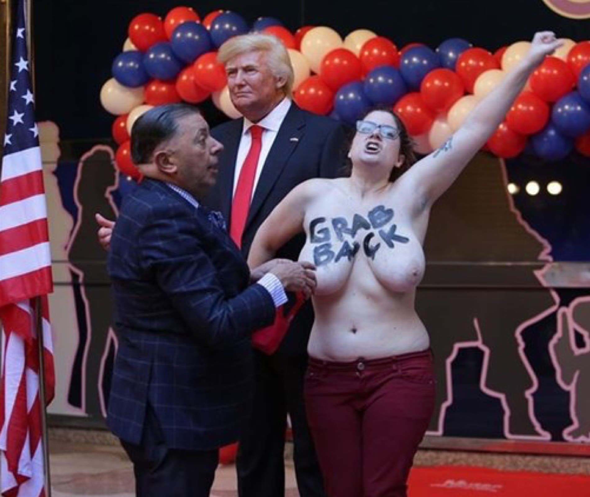 Una feminista enseña los pechos a Donald Trump en el Museo de Cera de Madrid