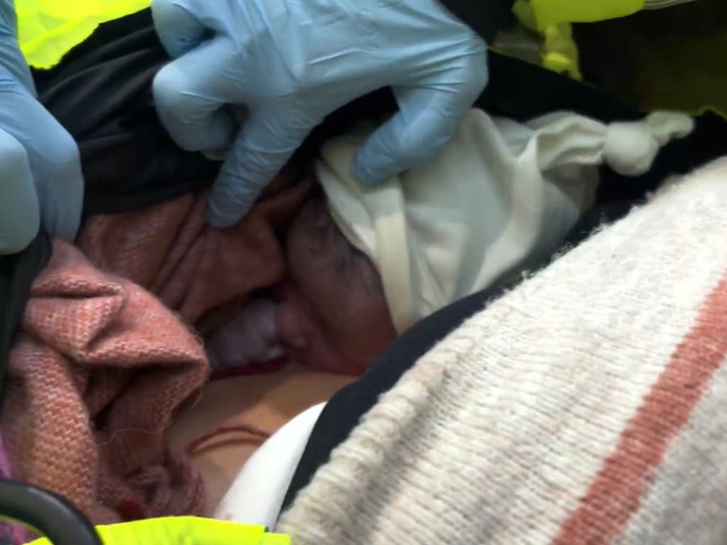 Los equipos de emergencias han cortado el cordón umbilical y han colocado a la recién nacida sobre su madre en contacto piel con piel. La niña presentaba buen aspecto y buena coloración.